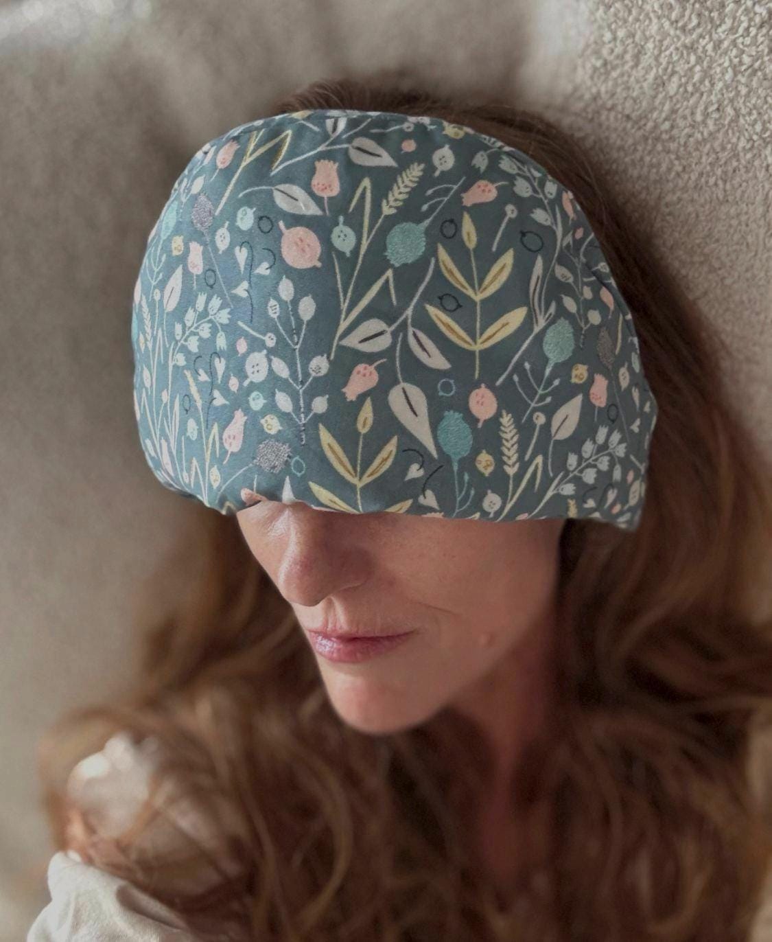 Weighted Eye Pillow, Teal Floral, Herbal Aromatherapy, Microwavable, Therapeutic Relaxation, Flaxseed, Self Care Gift