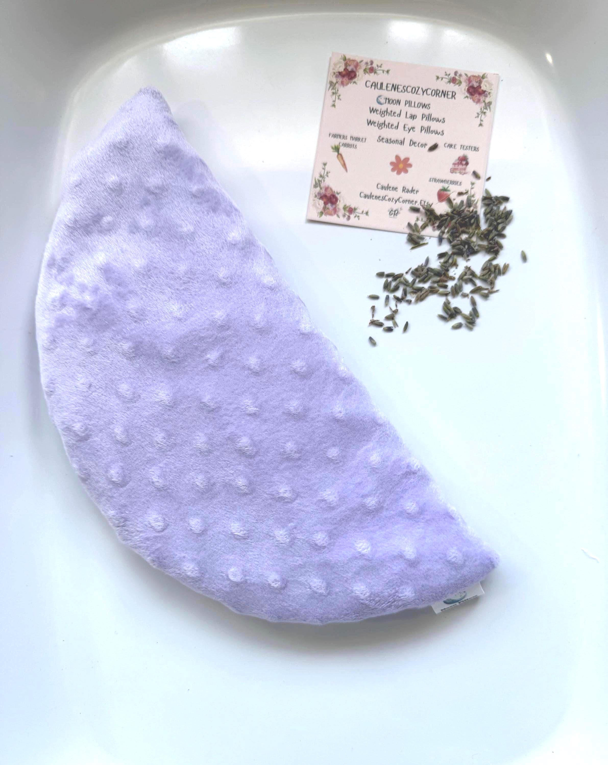 Half Moon Eye Pillow is thoughtfully shaped for a natural fit. Gentle pressure and soothing design helps the pillow contour naturally to the eyes, temples, and forehead. Perfect for unwinding after work and before bedtime relaxation. Promotes calm, encouraging your body to release stress and unwind naturally. Ideal for meditation, quiet reading, personal relaxation, reflection and recharging.