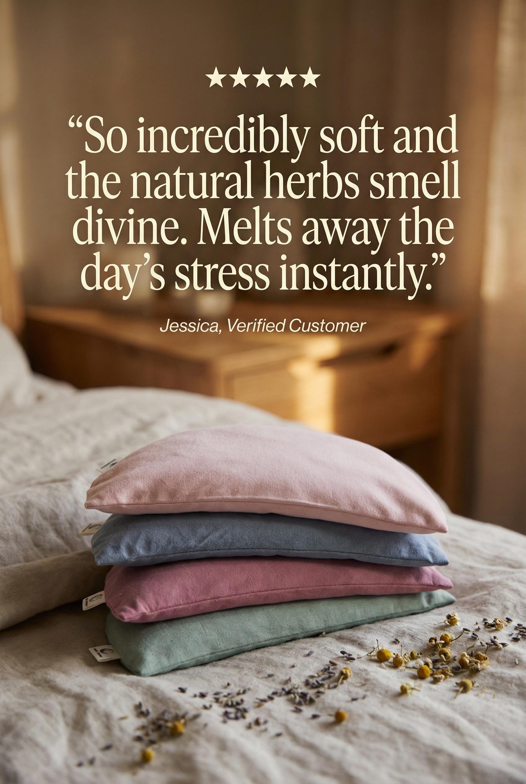 ⏺Handcrafted with care and with two layers- Constructed with an inner lining to guarantee a balanced weight and maintain the herbal scent. Each pillow is thoughtfully made to feel soft against the skin, with a balanced fill that contours naturally, enhancing comfort and relaxation.