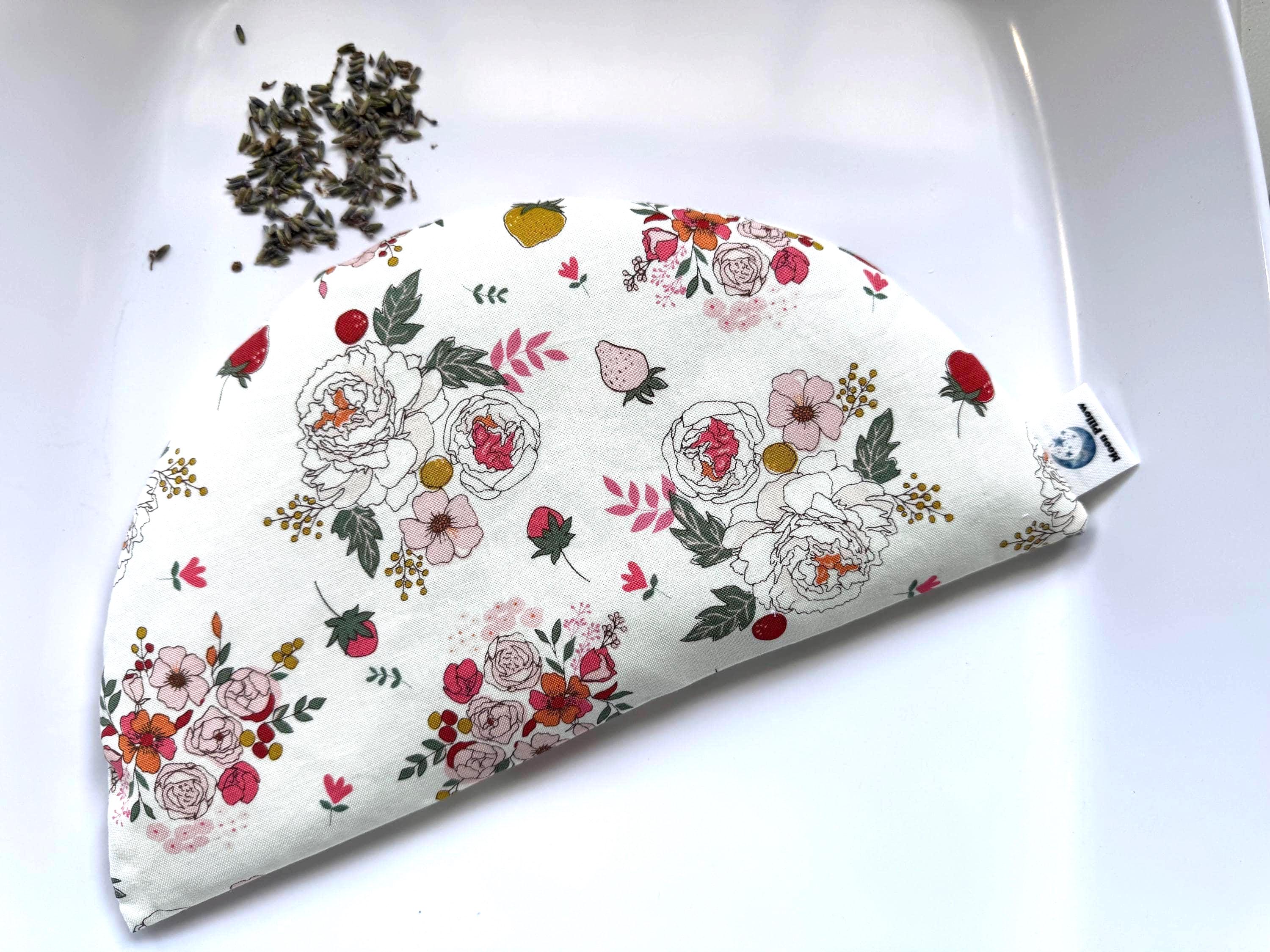 Weighted Eye Pillow, Blooming Strawberries, Flaxseed, Warming, Relaxation, Microwaveable Heat Pack, Valentines Gift Her