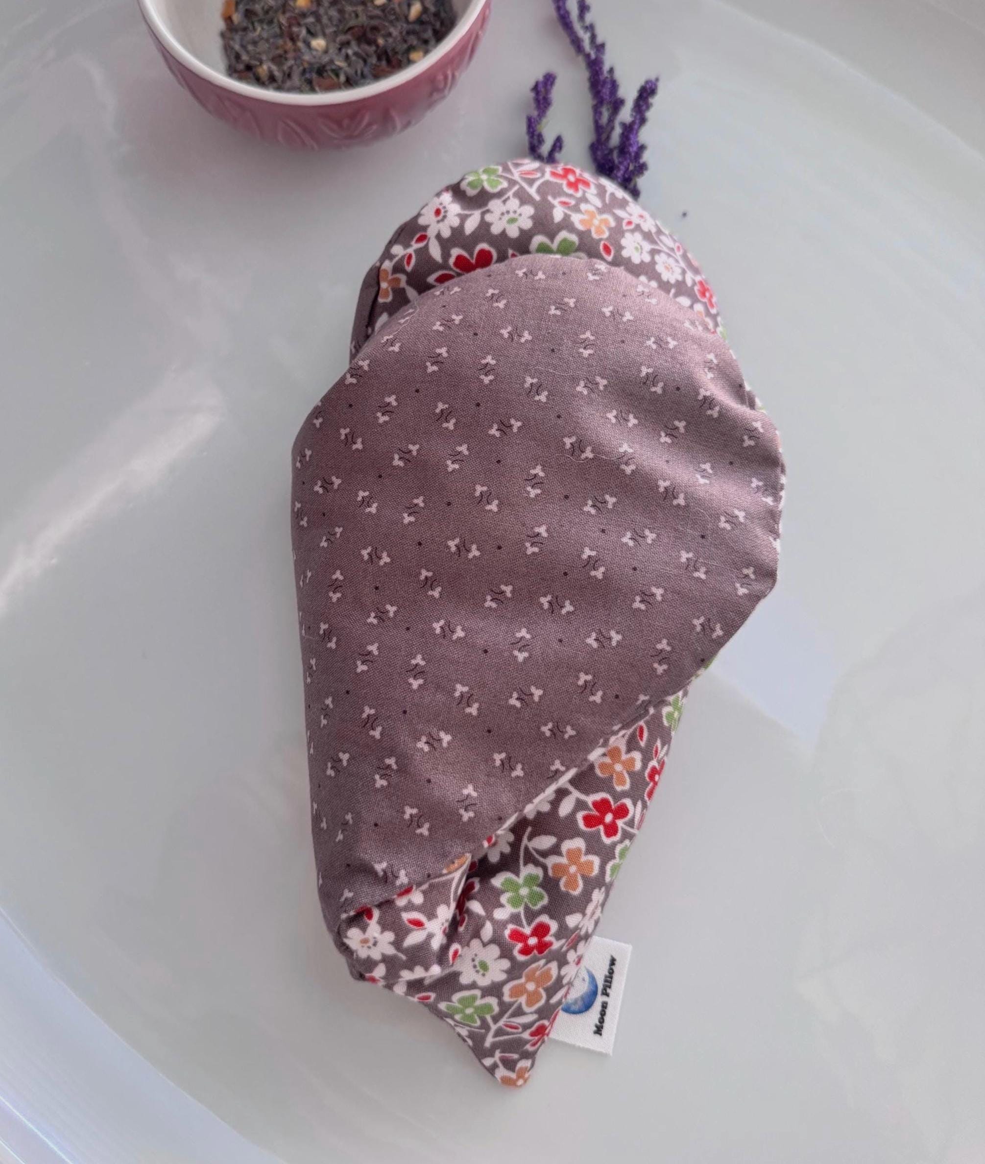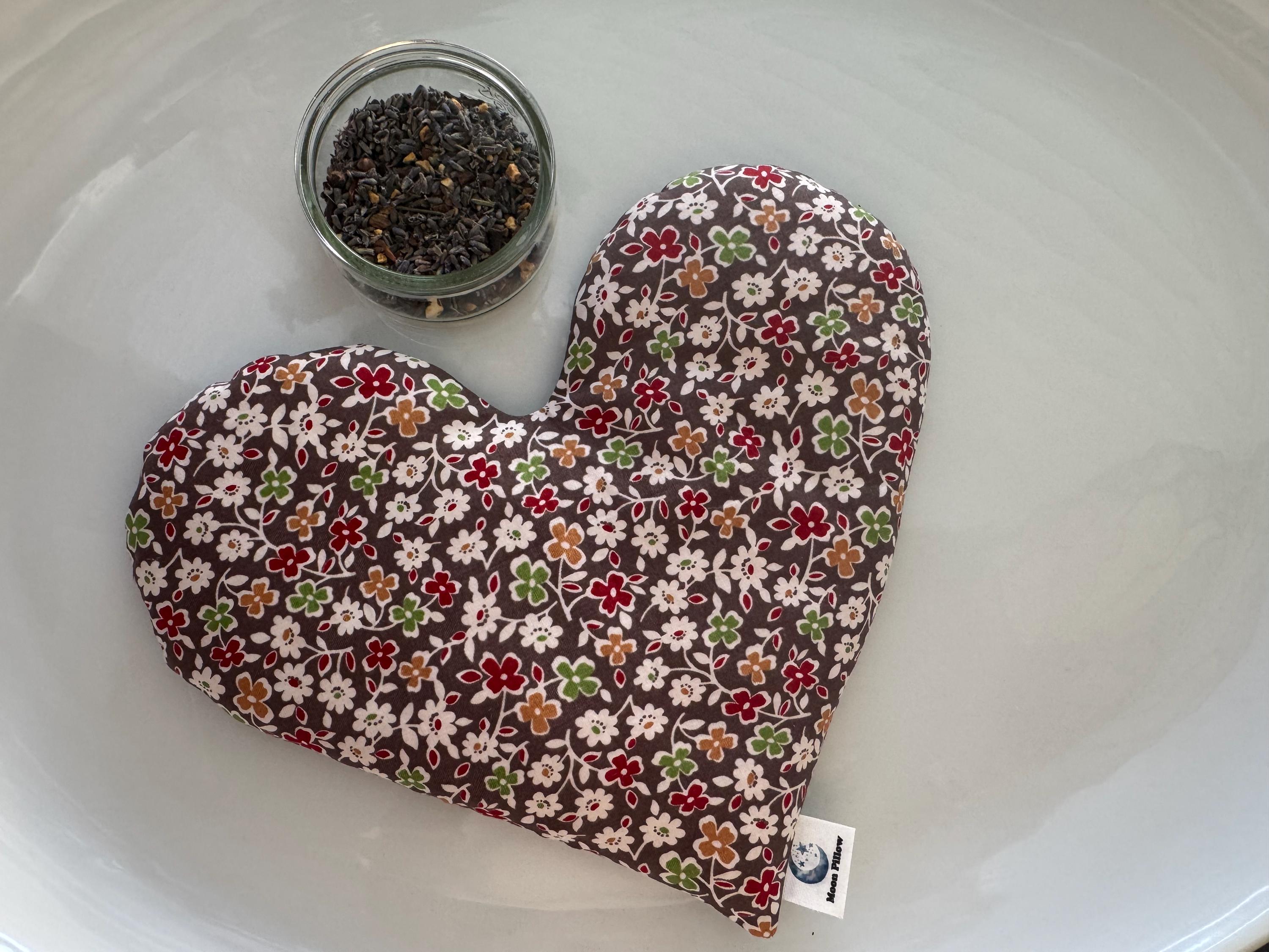 Weighted Heart Eye Pillow, Brown Floral,Microwavable, Flaxseed Warmer, Lavender, Headache Relief, Spa & Relaxation