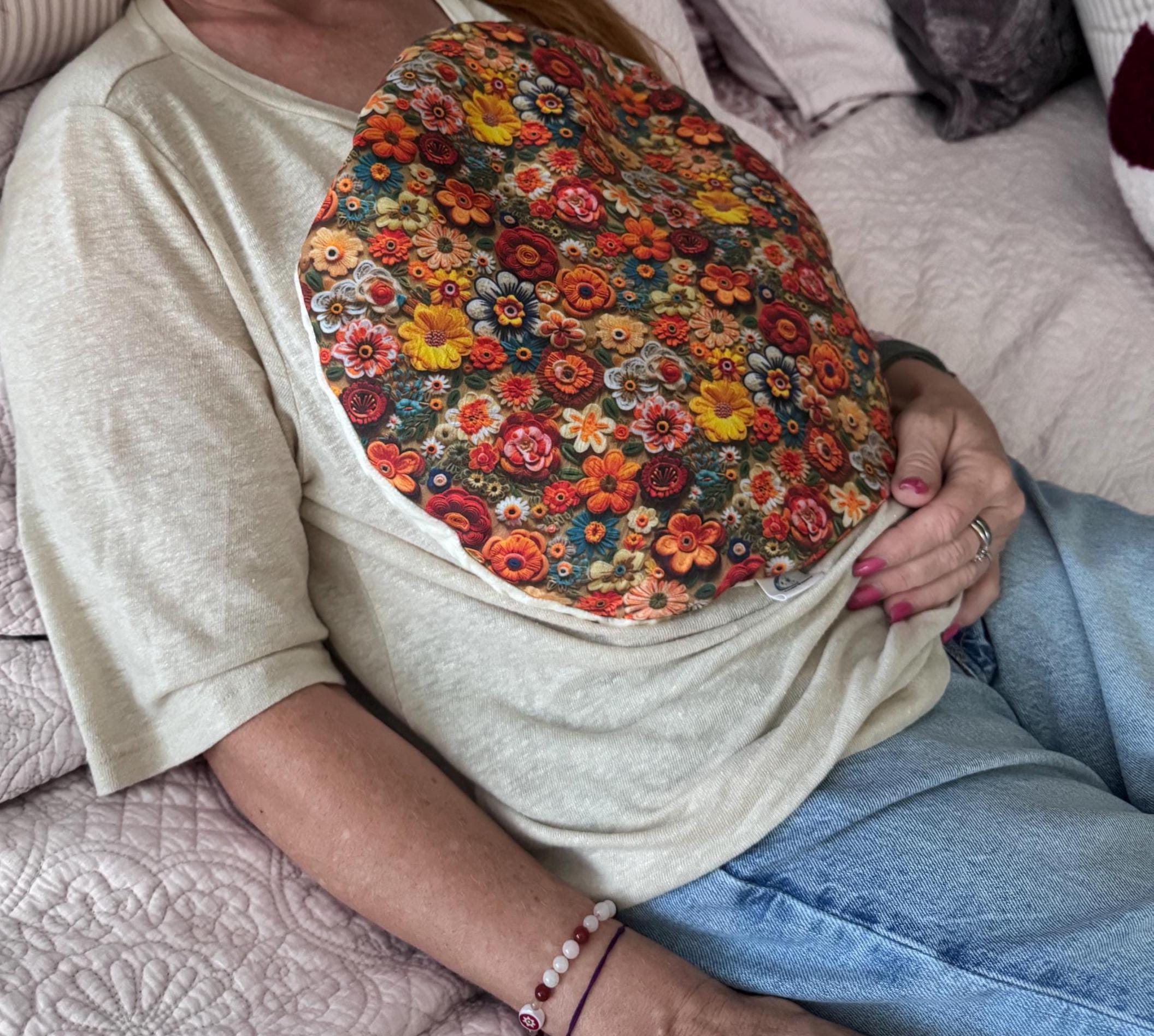 Weighted Lap Pillow, Orange Floral, Microwave Heating Pad, Stress Relief Gift, CuddleCalm, Relaxing Aromatherapy