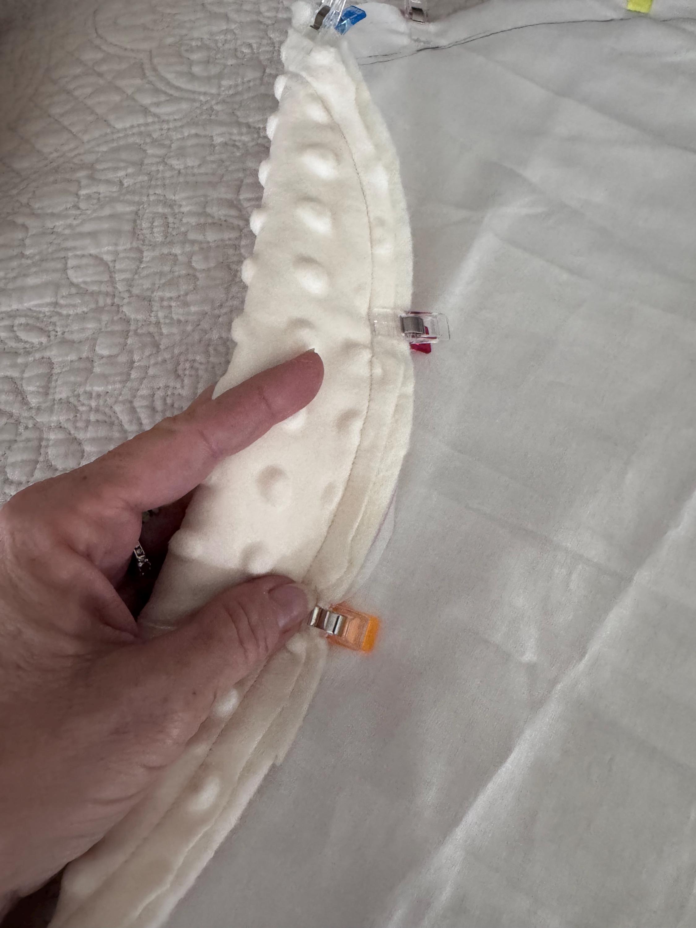 • Back: soft minky fabric, breathable woven cotton interfacing, organic cotton batting