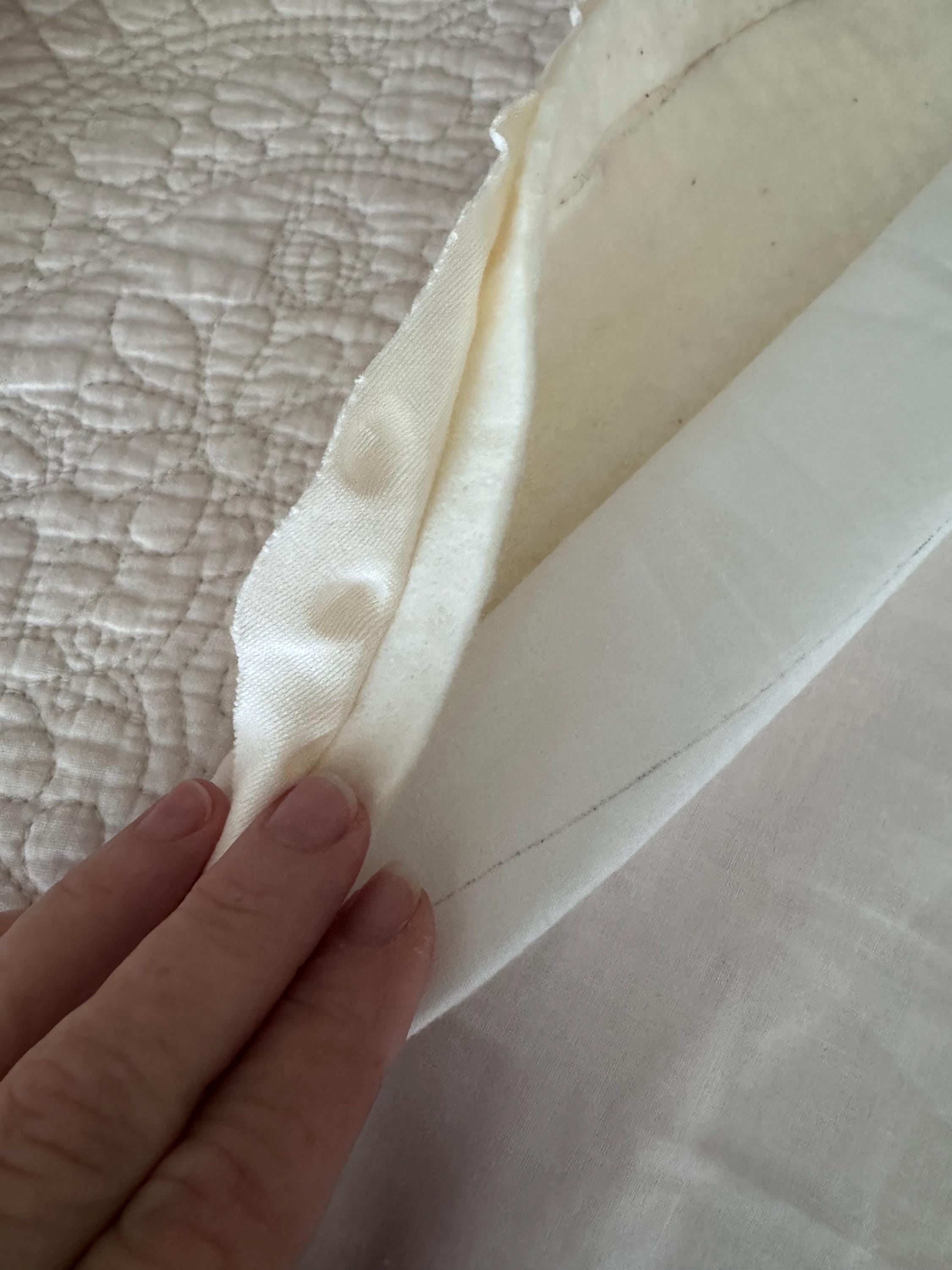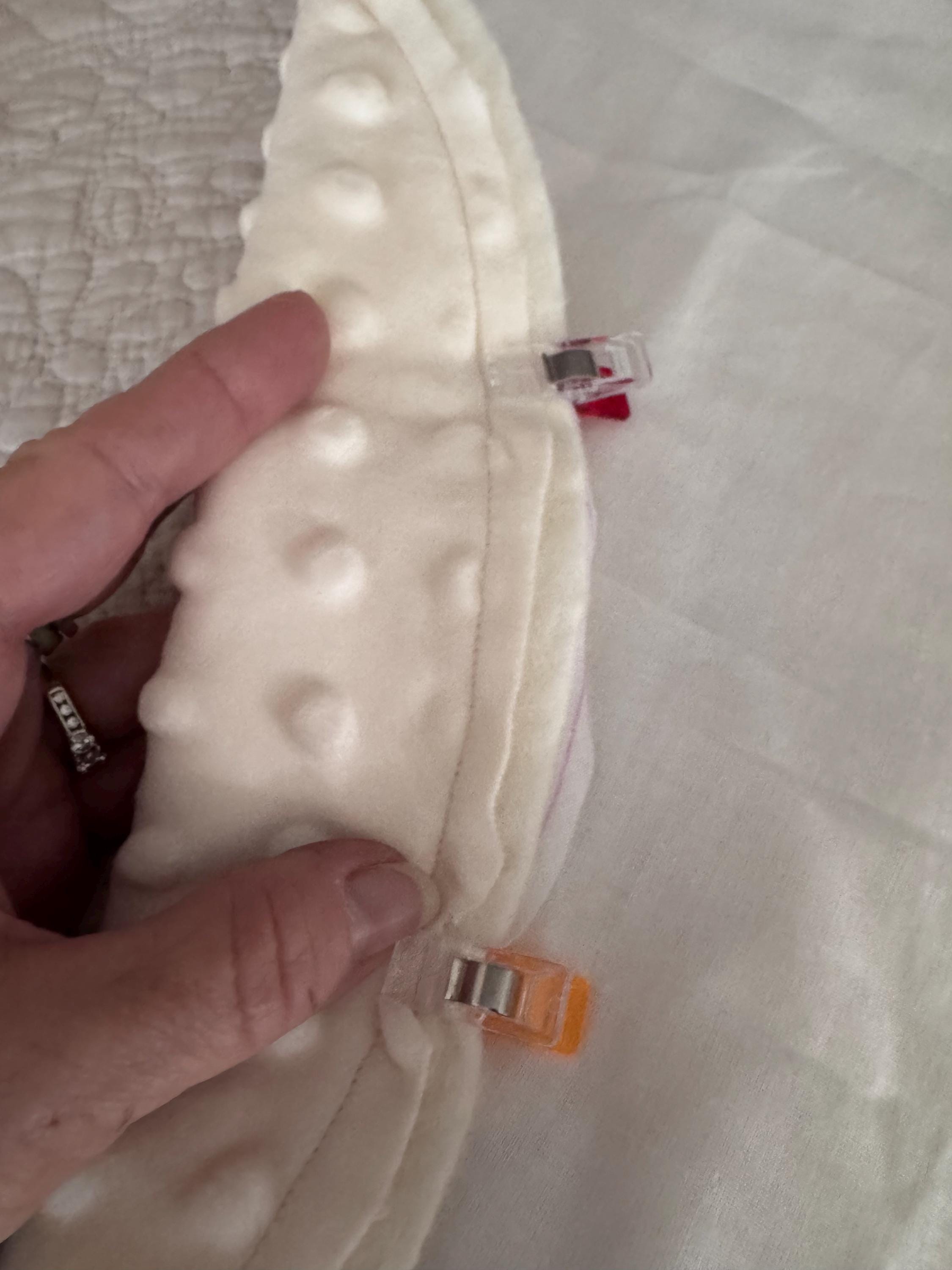 • Back: soft minky fabric, breathable woven cotton interfacing, organic cotton batting