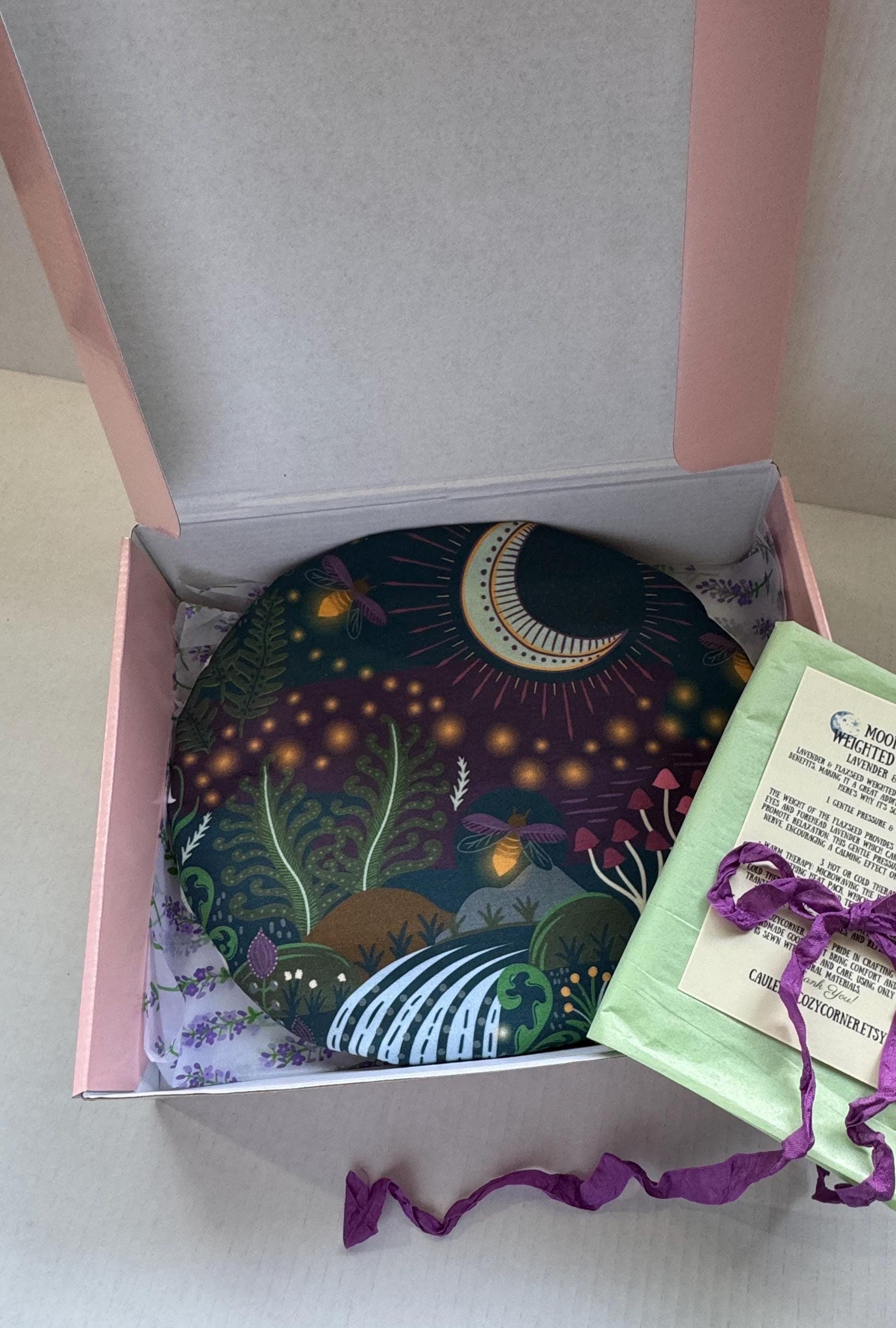What a treat! Beautifully crafted, subtle and delightful fragrance (I chose the mint and it is so soothing). The weight is just right and I love the fabric pattern. Thank you.
