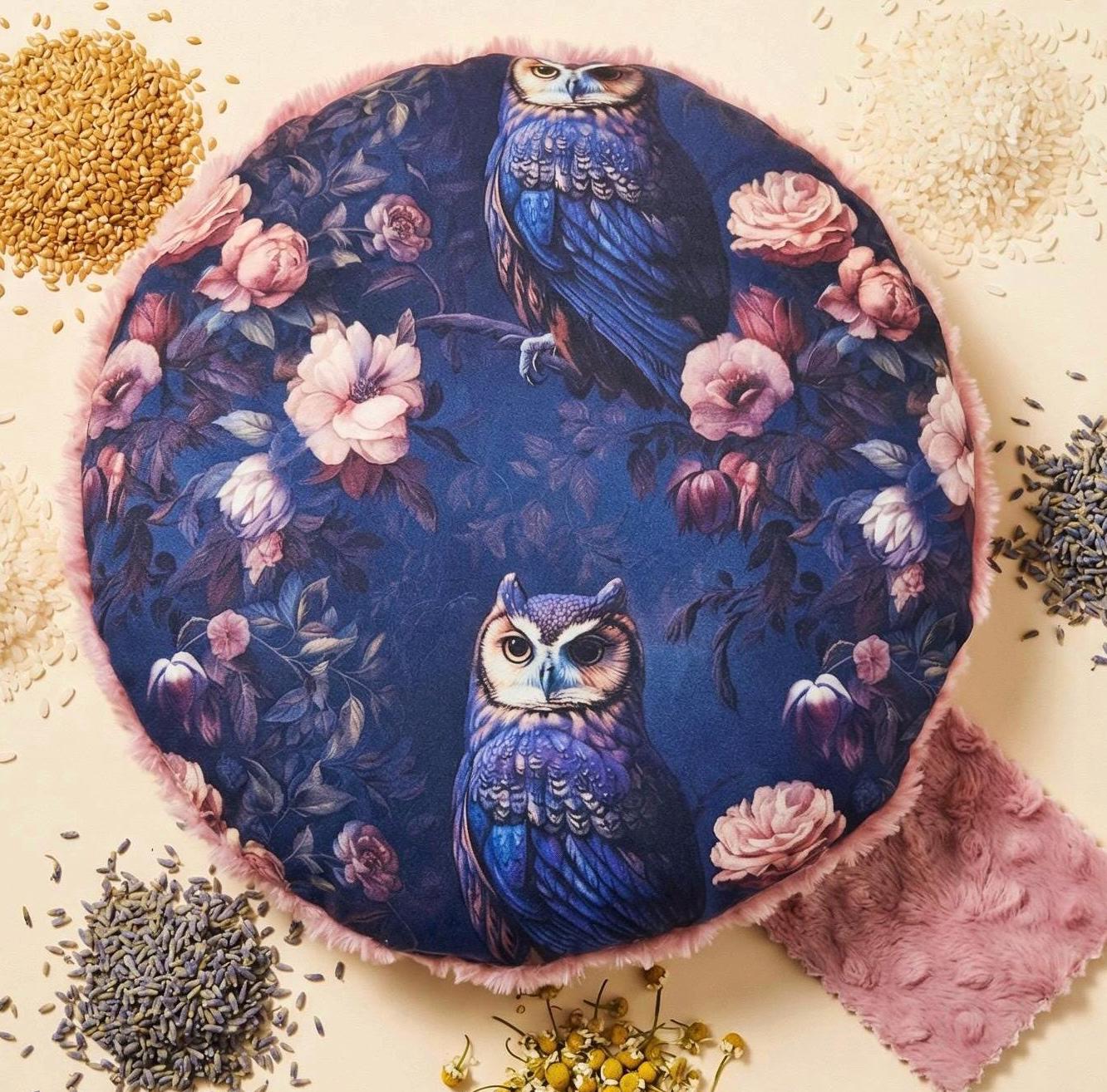 I LOVE THESE PILLOWS!! I so love these round pillows, they are wonderful!! I like to heat them up for comfort!! I like to place them on my chest at night when going to sleep, the weight and heat help me fall asleep!! I love the fabric on this one. The owl is too adorable, and the backing on it is fuzzy soft!! Absolutely perfect!!!