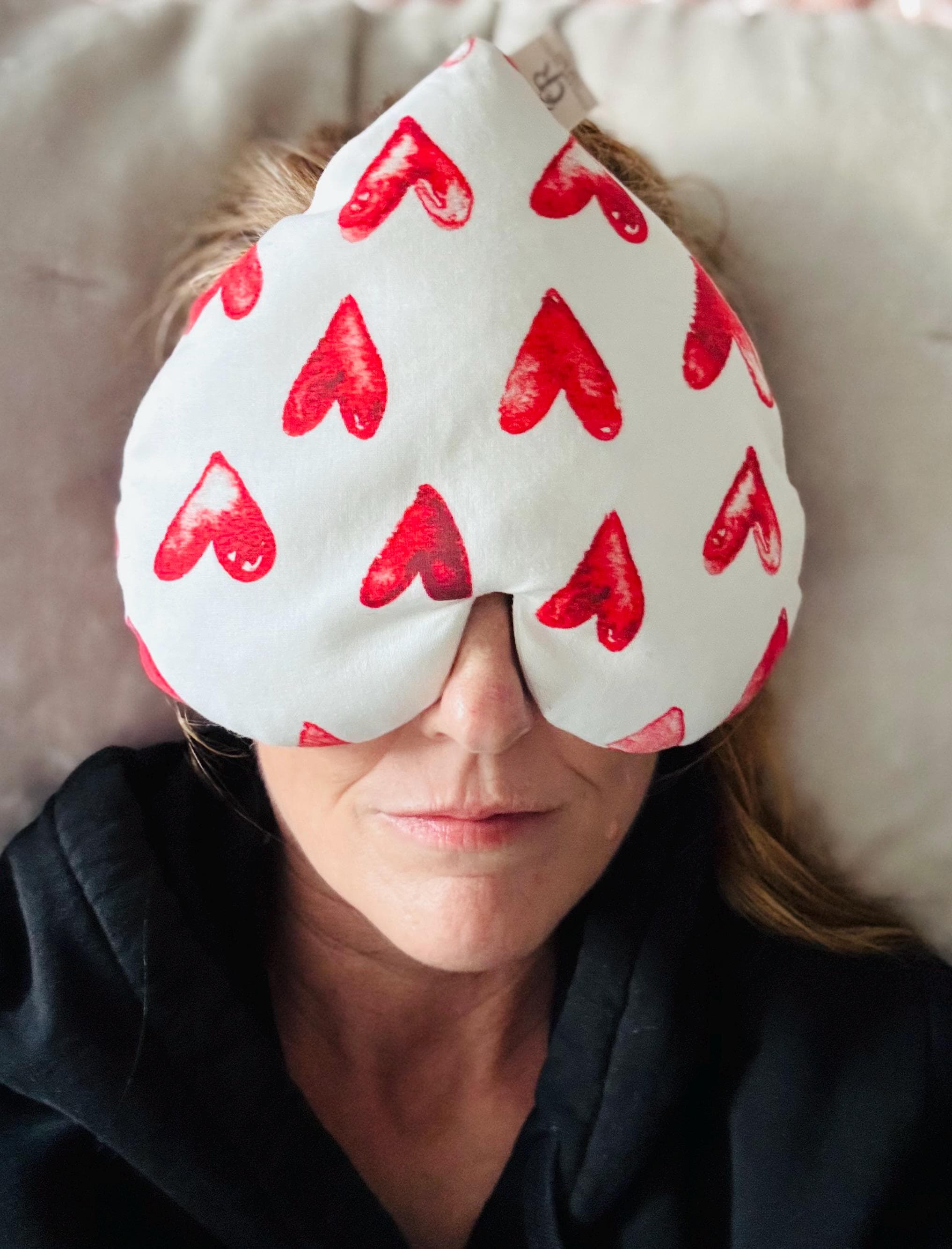 Weighted Heart Eye Pillow, Watercolor Valentines, Microwavable Heat Pack, Scented, Unscented, Flaxseed, Sleep Mask